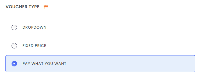 If you set the voucher type to Pay What You Want, your customer can choose the value for their voucher before they purchase.
