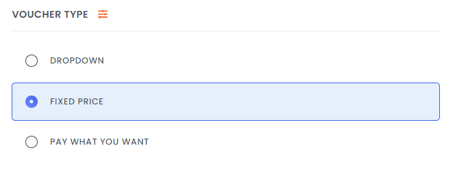 If you would prefer to sell your voucher at a fixed price, you can set your voucher to be fixed price in the first step of product setup. You can enter your fixed price value in the
