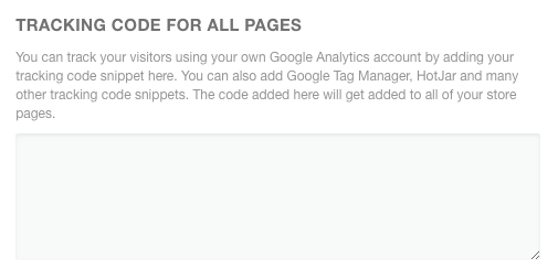 Once you’ve signed in, click on Settings, and go to Store Settings. Scroll down until you find the Tracking Code For All Pages box.