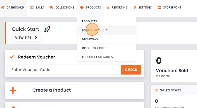 - Head over to your dashboard, and select Bonus Products from the Products dropdown.